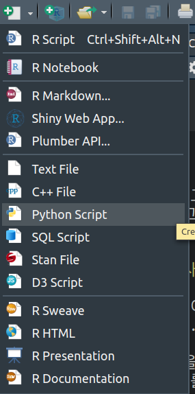 R 코드 말고 파이썬으로만 코딩하고 싶으면 아예 파이썬 스크립트를 연다.