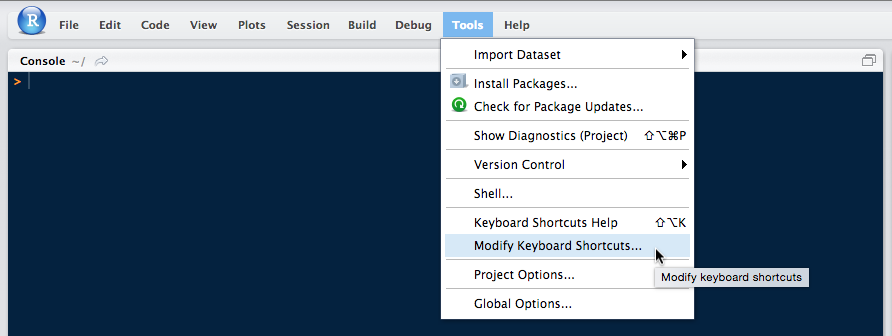 위의 메뉴를 타고 들어가면, 이미 정의된 쇼트커트들이 있다. 잘 사용하면 좋다. 많이 사용되는 숏컷은 나중에 정리해보고, 오늘은 Rstudio에서 파이썬 코딩을 할 때 사용해야하는 숏컷 설정에 대하여 알아본다.
