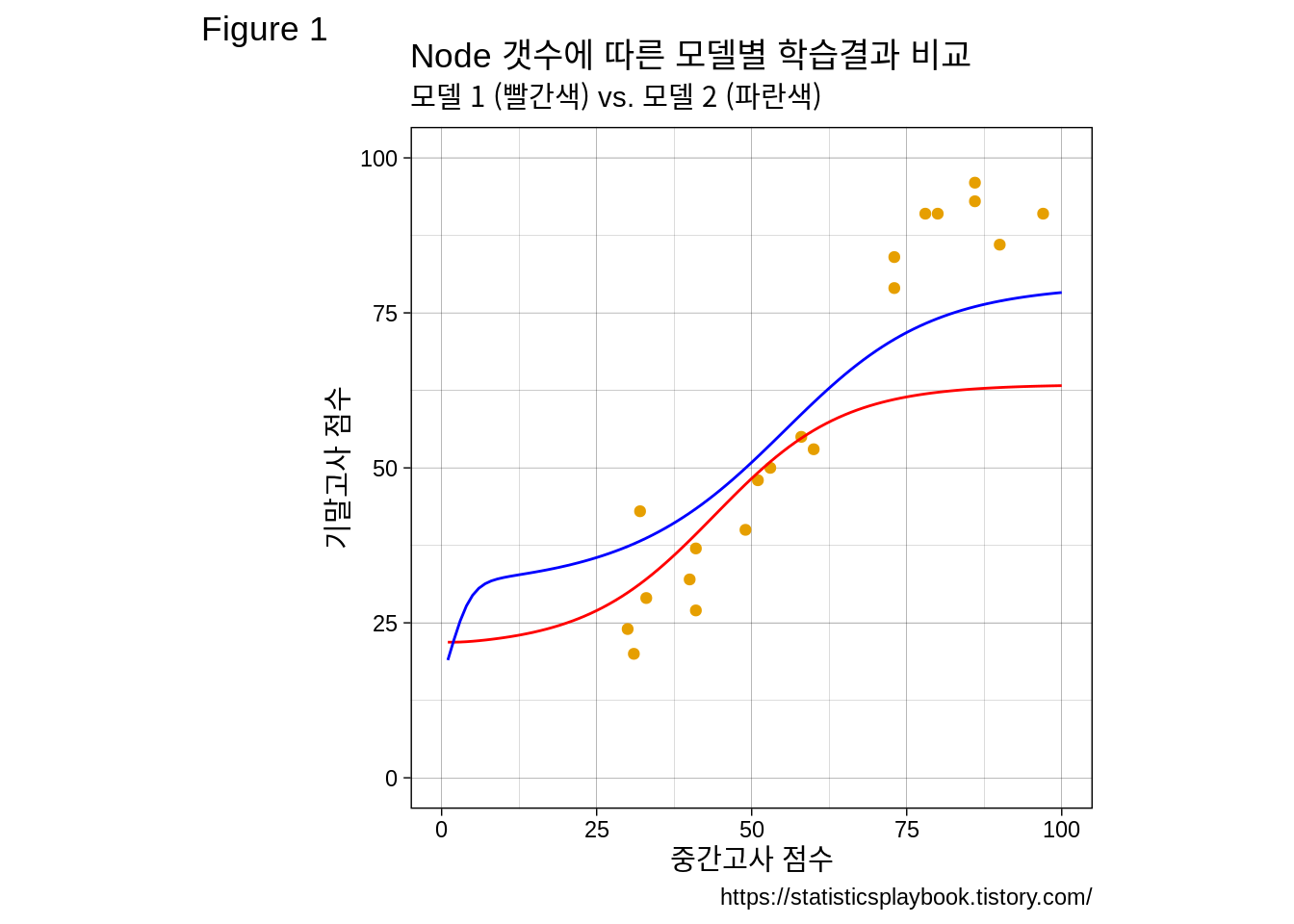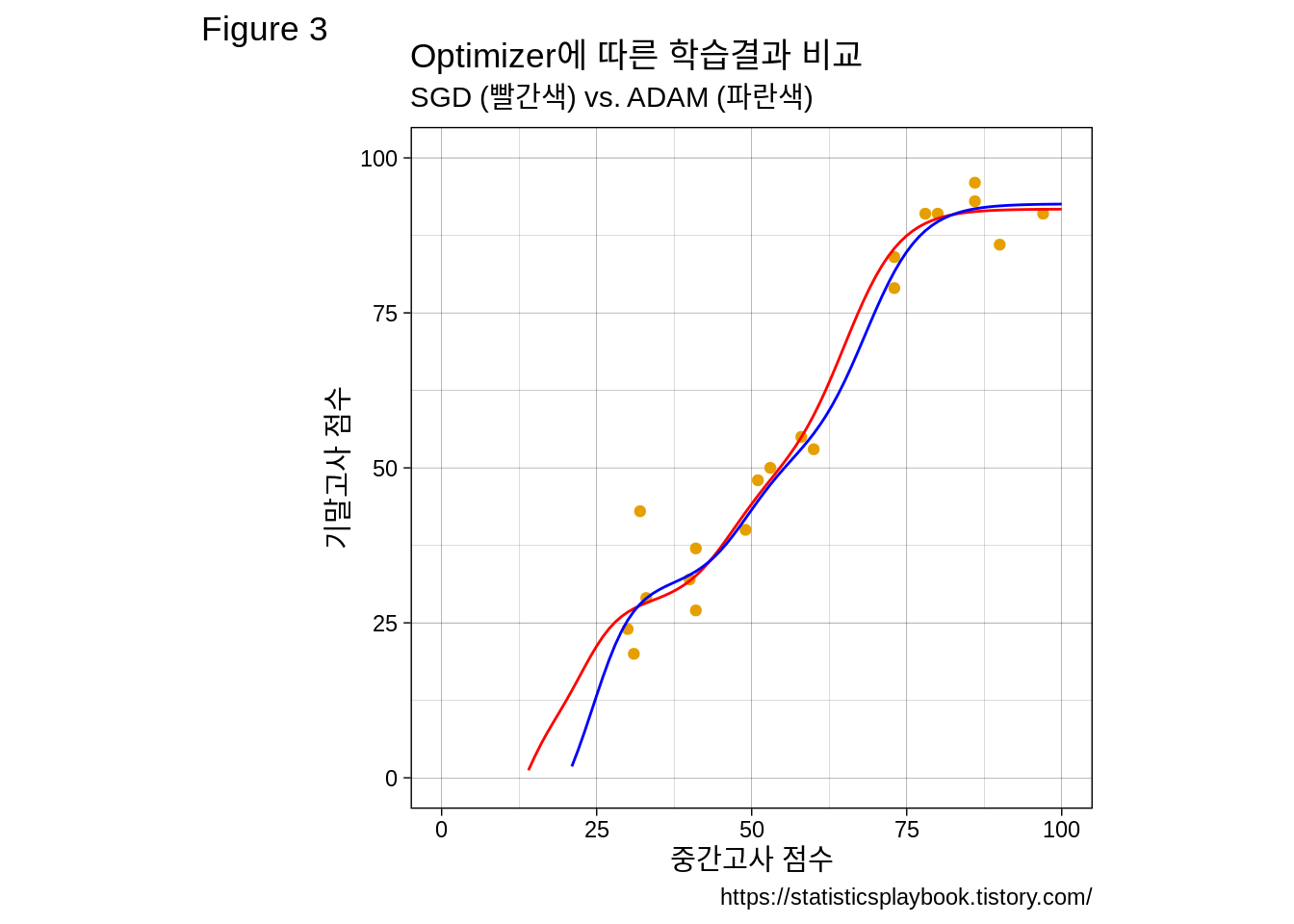 위의 효과들을 알아보기 위하여 필자가 만든 학생들의 중간, 기말고사 데이터에 적용된 회귀분석 모델과의 비교를 시도하겠다.