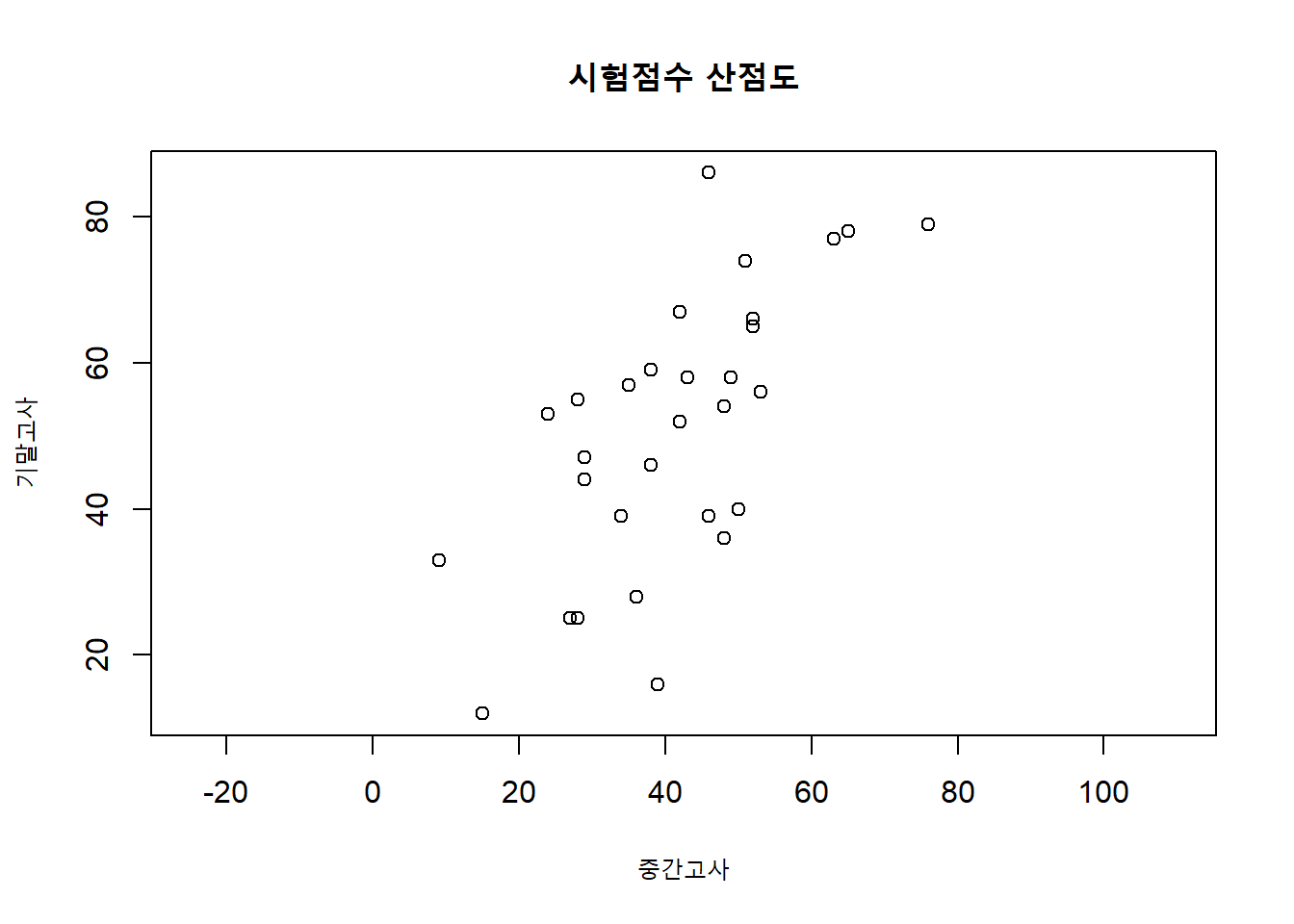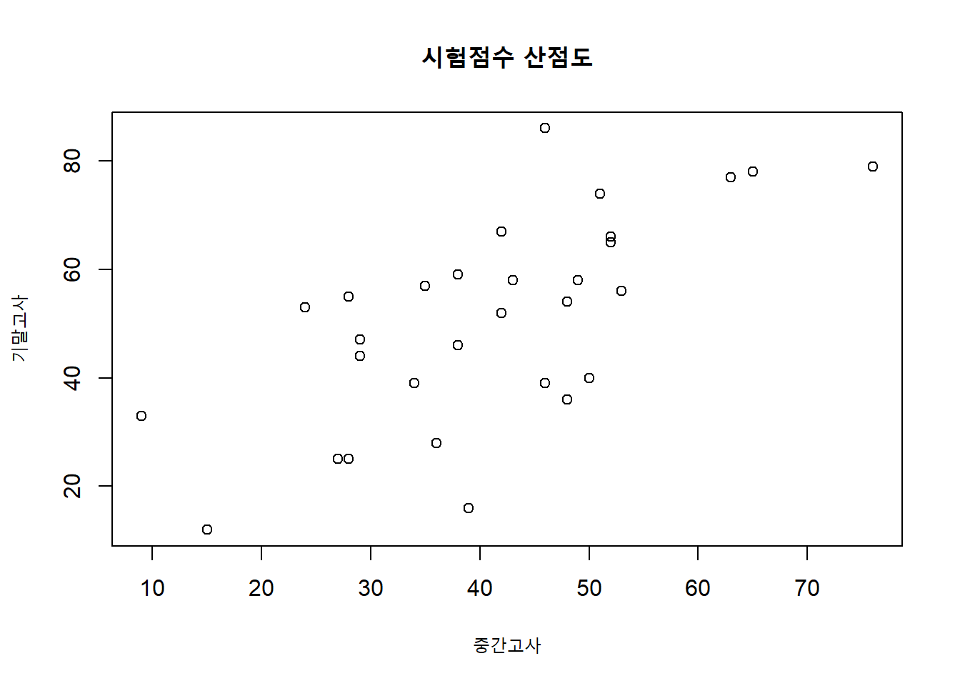 main = "시험점수 산점도")