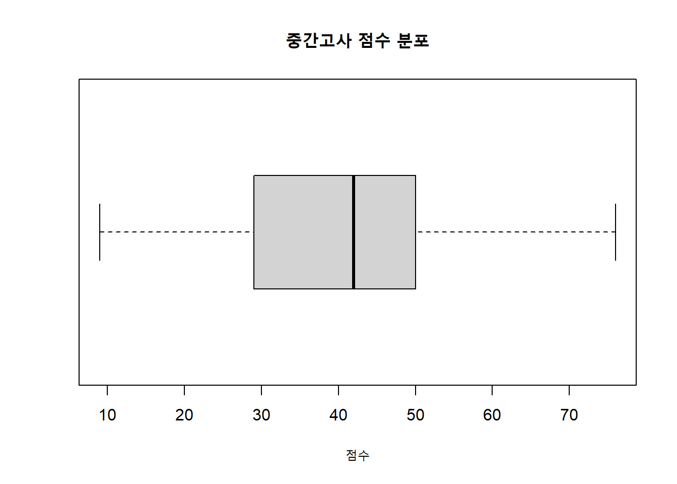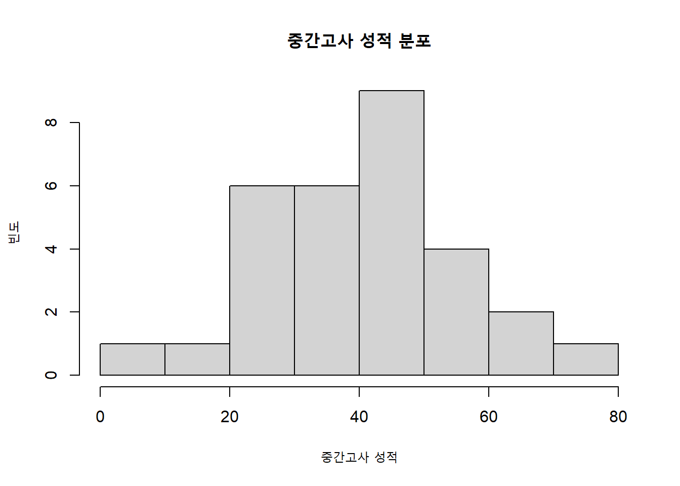 main = "중간고사 성적 분포")