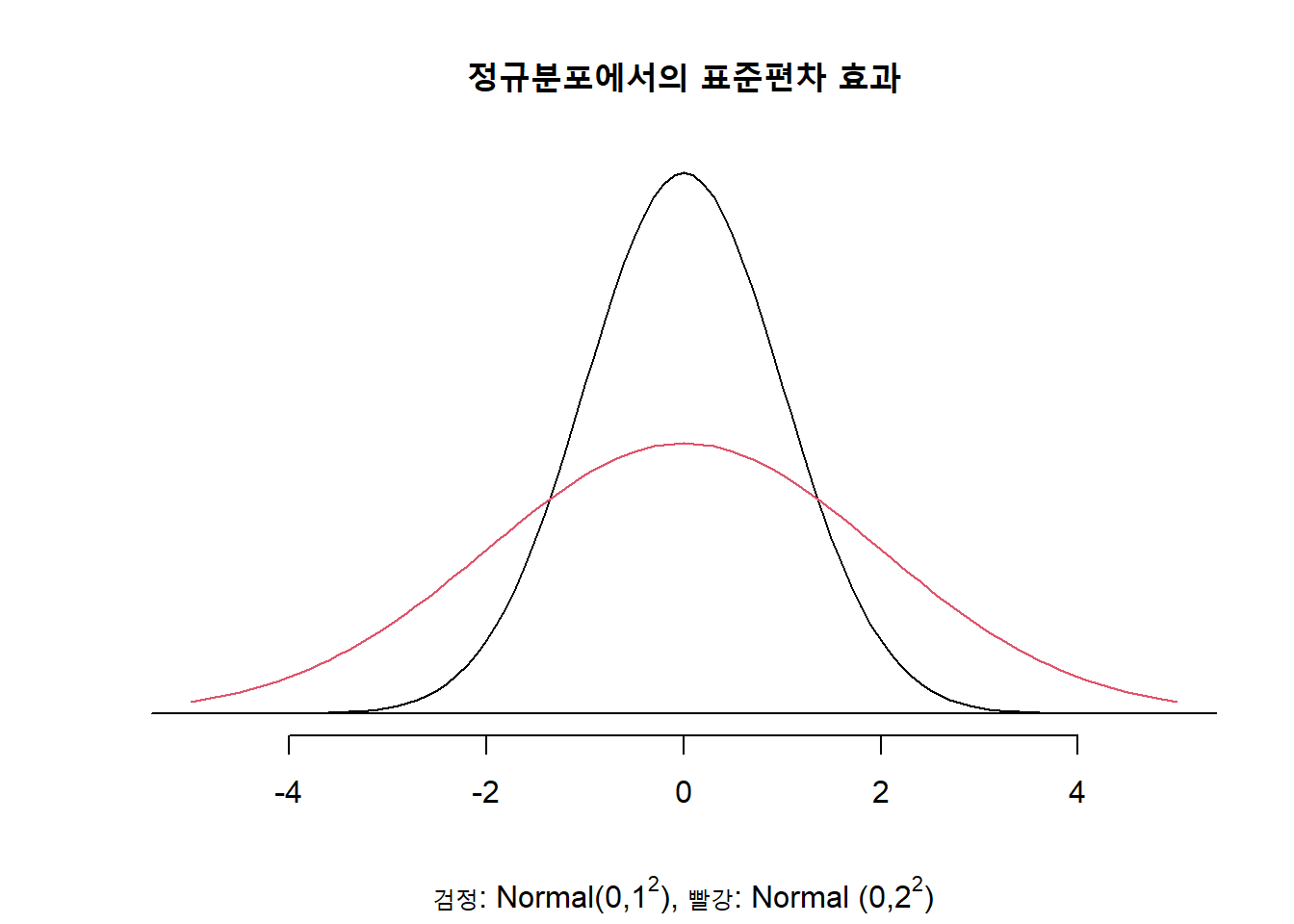 - 표준편차는 곡선의 퍼짐과 관련이 있다.